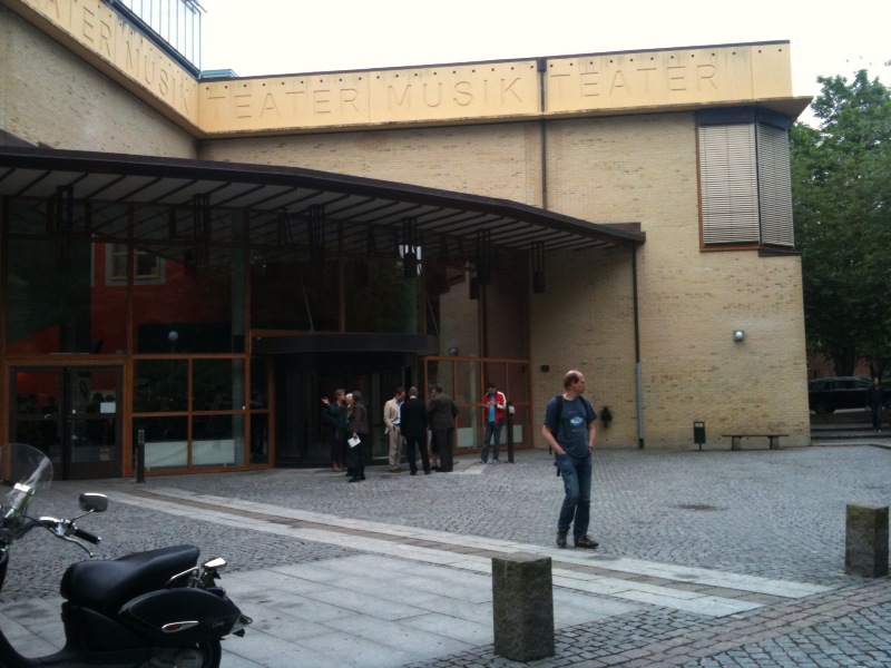 – att Björn Sjögrens Yin-Yang skulptur, som nästan står mitt bland alla slagverken, faktiskt inte är ett slagverk, utan en skulptur är precis vad det är. Detta cylinderformade ting i trä som når mig till midjehöjd är vackert och olikt något jag tidigare sett. Lite nyfiken på detta för mig hittills oupptäckta slagverk, ser jag till att under pausen ta mod till mig för att undersöka verket lite mer grundligt…för att just upptäcka att detta är inget man slår på!