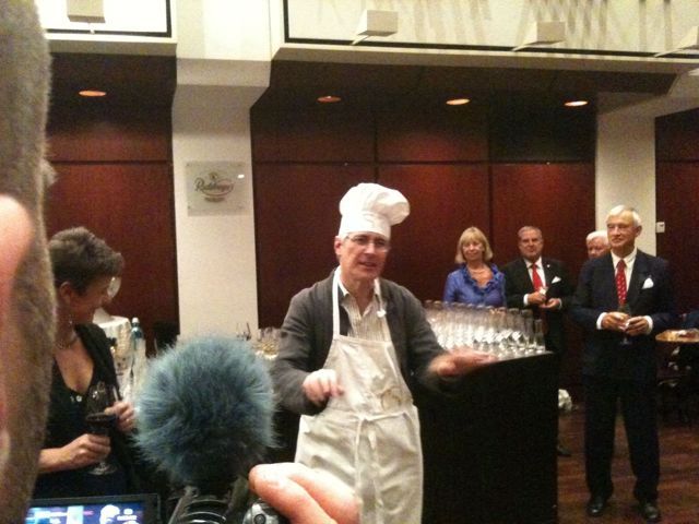 Vår förste gästdirigent tillika den som dirigerat alla konserter på turnén som just gått i mål fyller år och jämnt dessutom. Orkestern hyllar med sång och present men han var inte nöjd! ”Jag vill ha ett GSO-förkläde och kockmössa”, och det fick han. Inget vi vanligtvis släpar med oss men ni som följt bloggen kanske minns bilden på Mårten Larsson iförd sådan stass? Den plockades raskt fram och nu kan Christian Zacharias laga mat med stil! God Natt önskar Urban