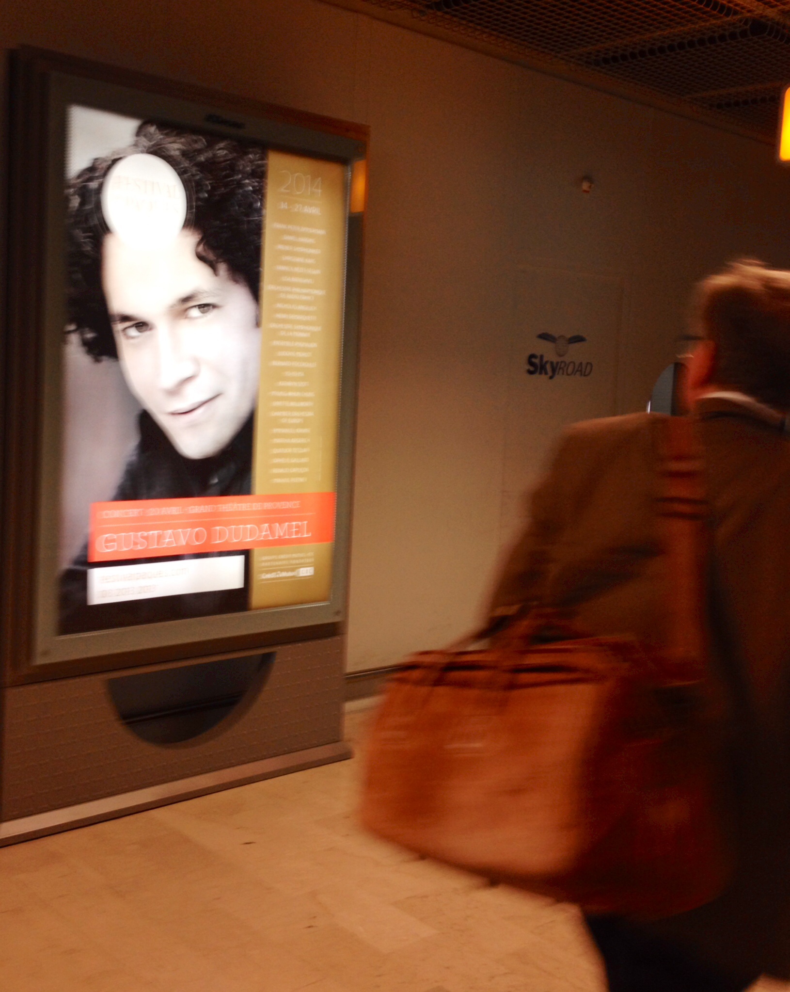 På väg ut ur flygplatsen möttes vi av en stor bild på Dudamel – en reklamskylt för vår konsert. Kul! Bilden dök upp med jämna mellanrum längs vägen när vårt lämmeltåg av bussar ringlade sig fram genom det gröna landskapet med dess karaktäristiska rödbrända jord och bergiga panorama. För det är inte i Marseille vi ska spela, utan i Aix en Provence.