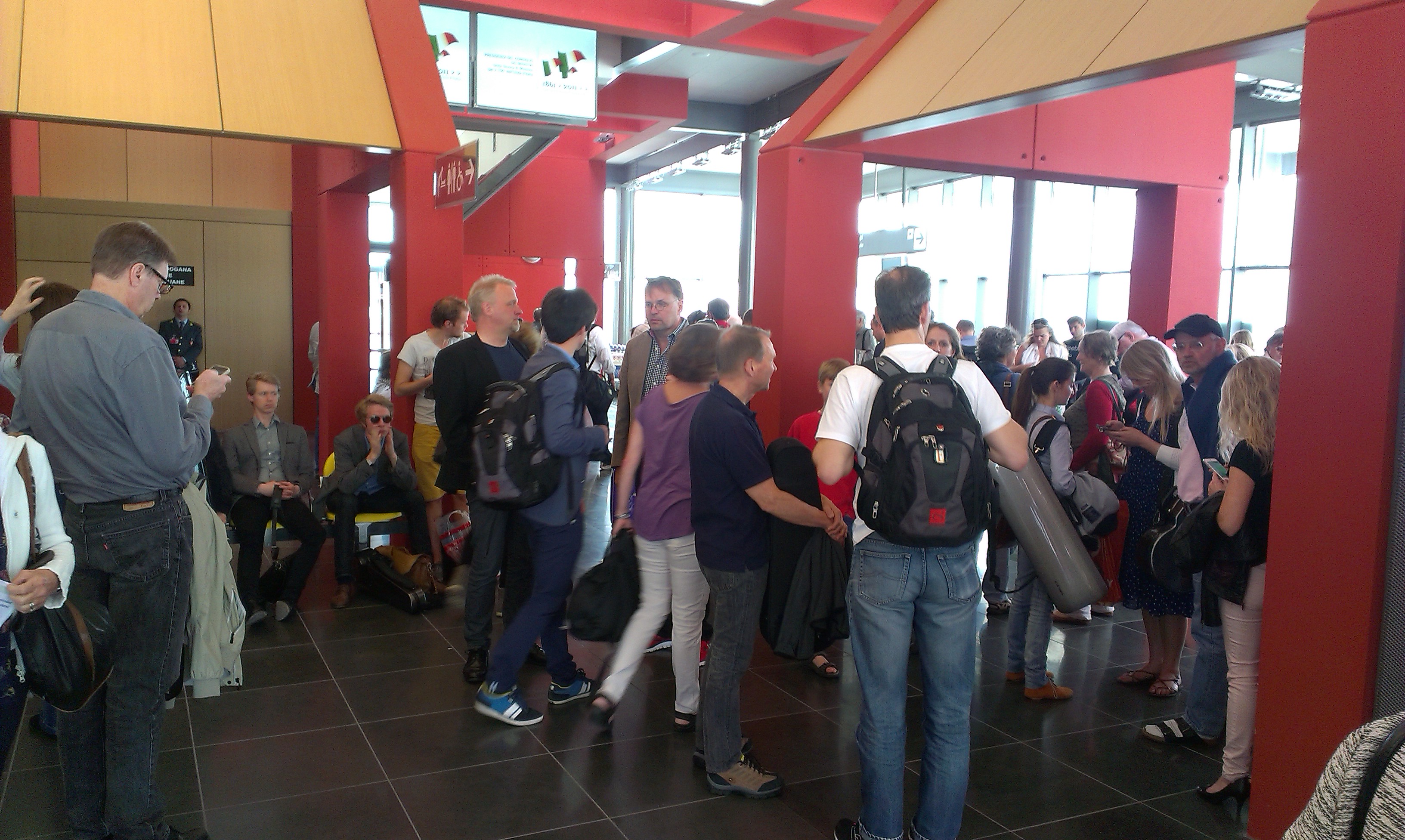 Vi har nu landat tryggt i vackra Perugia, huvudstad i provinsen Umbrien. Milano-Malpensa flygplats var som en labyrint och man mötte förvirrade musiker irra omkring bland check in-diskarna. Till slut lyckades vi hitta till vår gate och efter en kort väntan kunde vi gå på vårt plan.