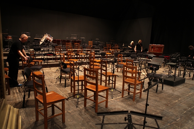 När musikerna anländer till konsertsalen drygt två och en halv timma innan konsert står instrumenten redo på och bakom scenen. De har felfritt hittat sin plats redo att spelas på. Vilka har vi att tacka för detta jobb må tro? Jo, våra podietekniker och trailerkillar. Det görs inte med en lätt handvändning – det behövs flera timmar att lasta in, placera, planera och diskutera. Ett enda pussel helt enkelt. Extra svårt pussel var det idag då scenen är liten. På grund av att det föredras att ha en öppen yta längst fram mot publiken på podiet kom teknikerna fram till slutsatsen att det behövs dras ner på stråket. Alltså, färre musiker på kvällens konsert. Men ljuda ska det nog göra i den dekorativa salen.
