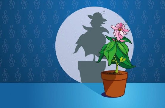 Den här gången, under ”Tant Blomma rymmer ur sin kruka” gick vi hand i hand med poesin. För det vet ju alla att poesi är ordets musik. Kristina Lugn skriver här för barn för första gången. Hennes språk är lika genialt som en femårings, lika överraskande som ett vårregn. Det är drastiskt, roligt, igenkänningsbart, ömsint och gåtfullt. Precis som den musik som orkestern spelade.