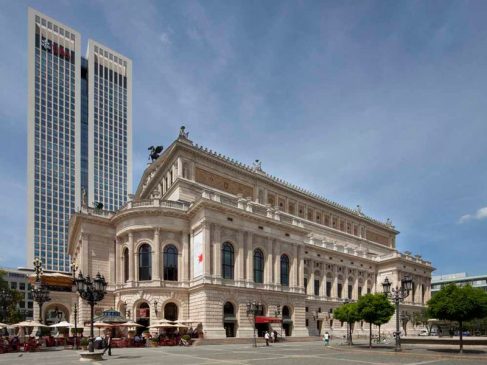 Föremålet för kvällens konsert är ”Alte Oper” som före kriget fungerade som stadens operahus. Här uruppfördes bl.a Carl Orffs ”Carmina Burana” den 8 juni 1937. Huset bombades under kriget och vid krigsslutet stod bara ytterväggarna kvar, därav epitetet ”Tysklands vackraste ruin”. En borgmästare ville spränga det som fanns kvar av huset och fick själv epitetet ”Dynamit-Rudi”.