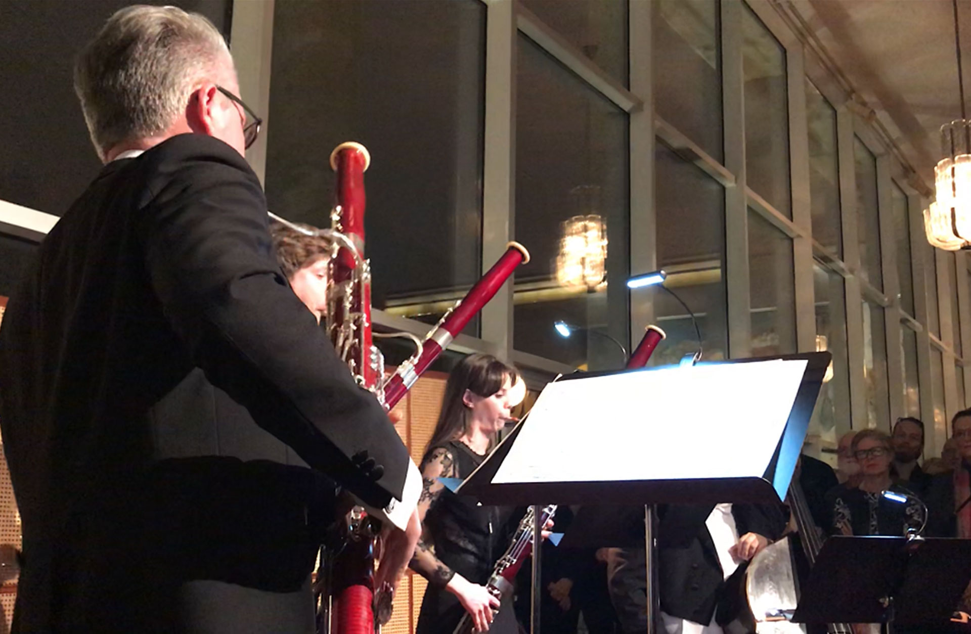 Som stolt publikutvecklare hade jag glädjen att få vara presentatör under konserten och när den var slut hade vi lovat överraskningar. I stort sett hela publiken valde att följa med vidare ut i Götaplatsfoajén, vårt vardagsrum för kvällen. Där tog musiker ur orkestern plats – fagottisterna Ole Kristian Dahl, Kaitlyn Cameron, Konstantin Gerstein och kvällens fjärdefagottstämma som oväntat spelades på kontrabas av Charles DeRamus. Vilken show! Vilka hjältar! I en helt underbar konsert möttes publiken av musik av Nielsen, Wagner och polka och polonaise av Julius Weissenborn. Jag kunde inte sluta le!