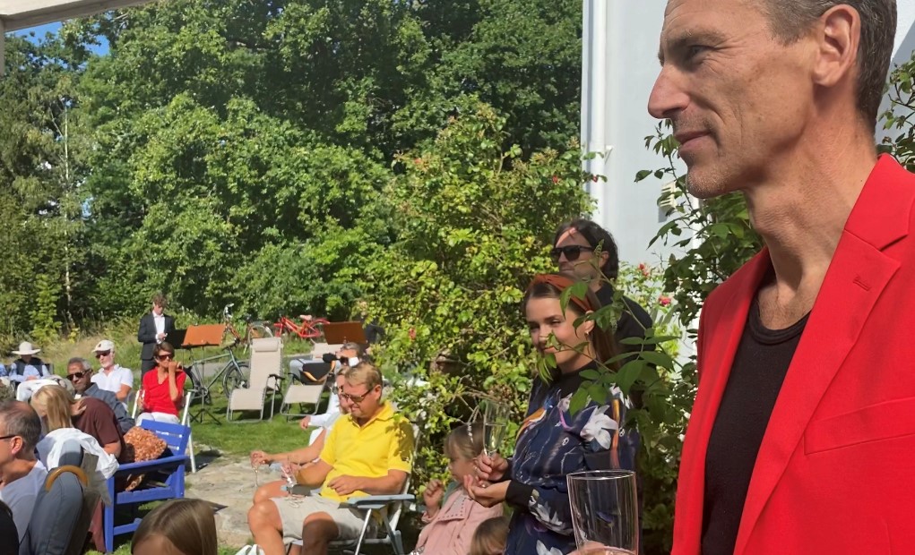 I söndags var det alltså dags för vinsten att gå i uppfyllelse. Eftersom det var en högtidlig dag med högtidlig musik pyntade jag trädgården med sammetsgardiner, bubbel i höga glas och snacks i muggar. Ljusspel mellan grönskan blev en så att säga naturlig inramning. Stolar placerades ut för att säkerställa avståndet mellan sällskapen i publiken. För det var fler än familjen som var inbjudna. Eftersom delad glädje är dubbel glädje, dessutom gör musiken glädjen mer glädjerik enligt Lill Lindfors, tänkte jag att så många som möjligt skulle få uppleva denna stund utan att utmana Folkhälsomyndighetens reglemente.