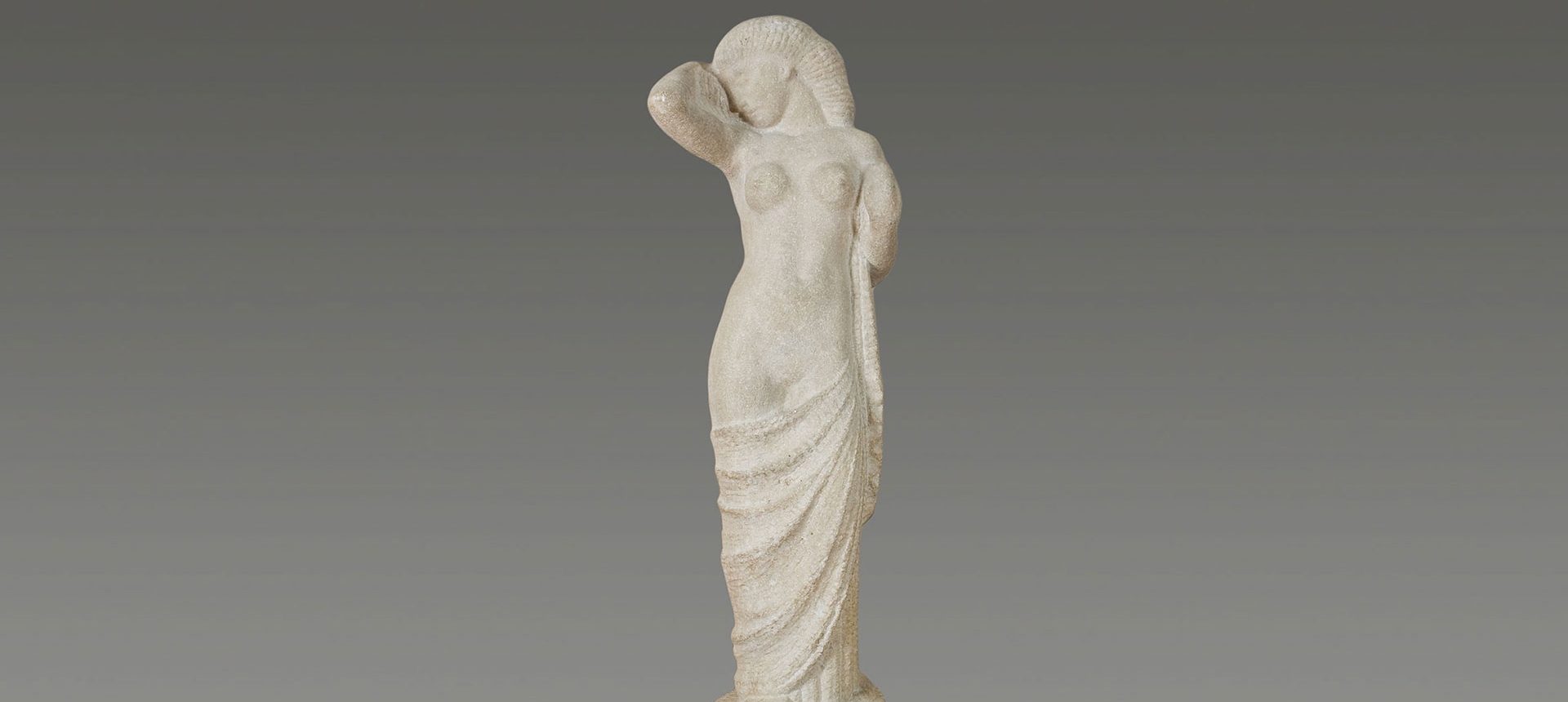 This work of art has had an adventurous life. The sculpture stands in the Götaplats foyer’s promenade, next to the large tapestry. A woman in a classic pose, half wrapped in cloth. We do not know exactly when it was made, but that it was donated to the Gothenburg Orchestra Association in 1918 by a private person, and then placed in the Concert Hall on Heden.