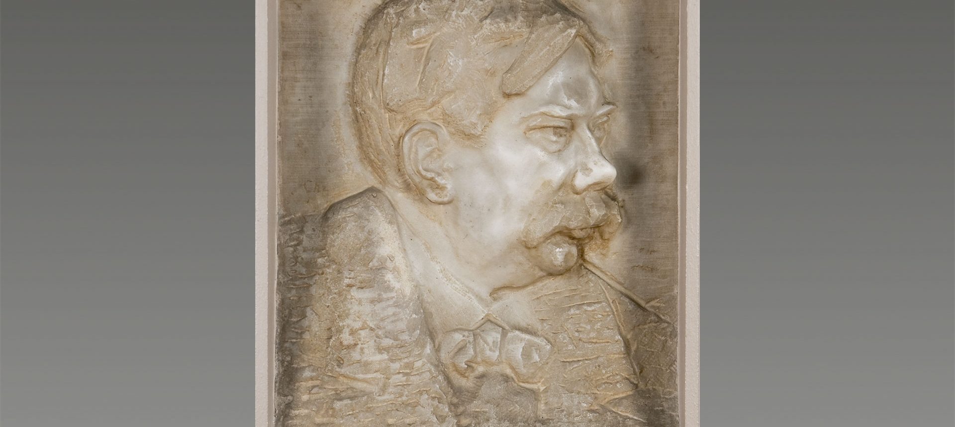 Relief in marble from 1935 depicting Tor Aulin (1866-1914), violinist, conductor and composer. Aulin was concertmaster at the Royal Theater in Stockholm 1889-1892 and also later worked as conductor of the Gothenburg Symphony Orchestra. He formed the highly respected Aulin Quartet in musical contexts in 1887. The portrait is recessed in the wall in the foyer of the Great Hall.