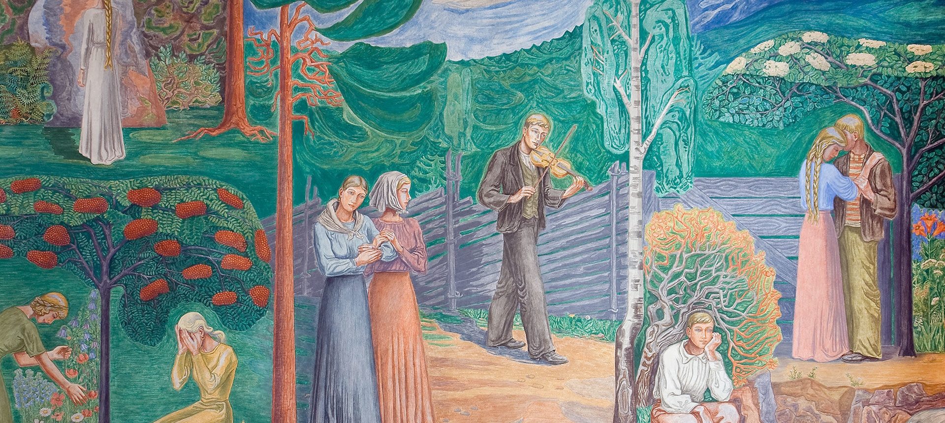 Målad på fuktig kalkputs vilket gör bilden mycket ljushärdig och hållbar. Bilden finns i Götaplatsfoajén och blir som en motpol till den mer uppsluppna bildväven av Sven X:et Erixson på väggen mitt emot.