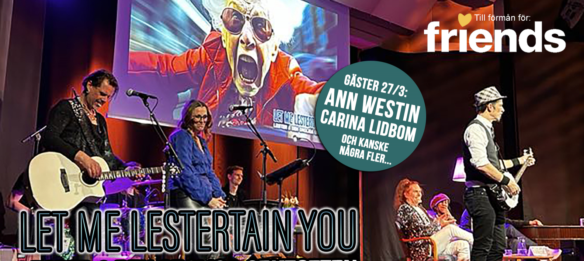 Evenemanget har ägt rum. En musikalisk och underfundig humorshow till förmån för Friends med Lester och Den Oroliga Orkestern. Gäster: Ann Westin, Carina Lidbom m.fl.