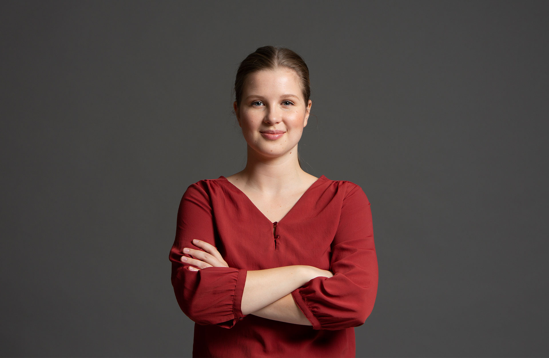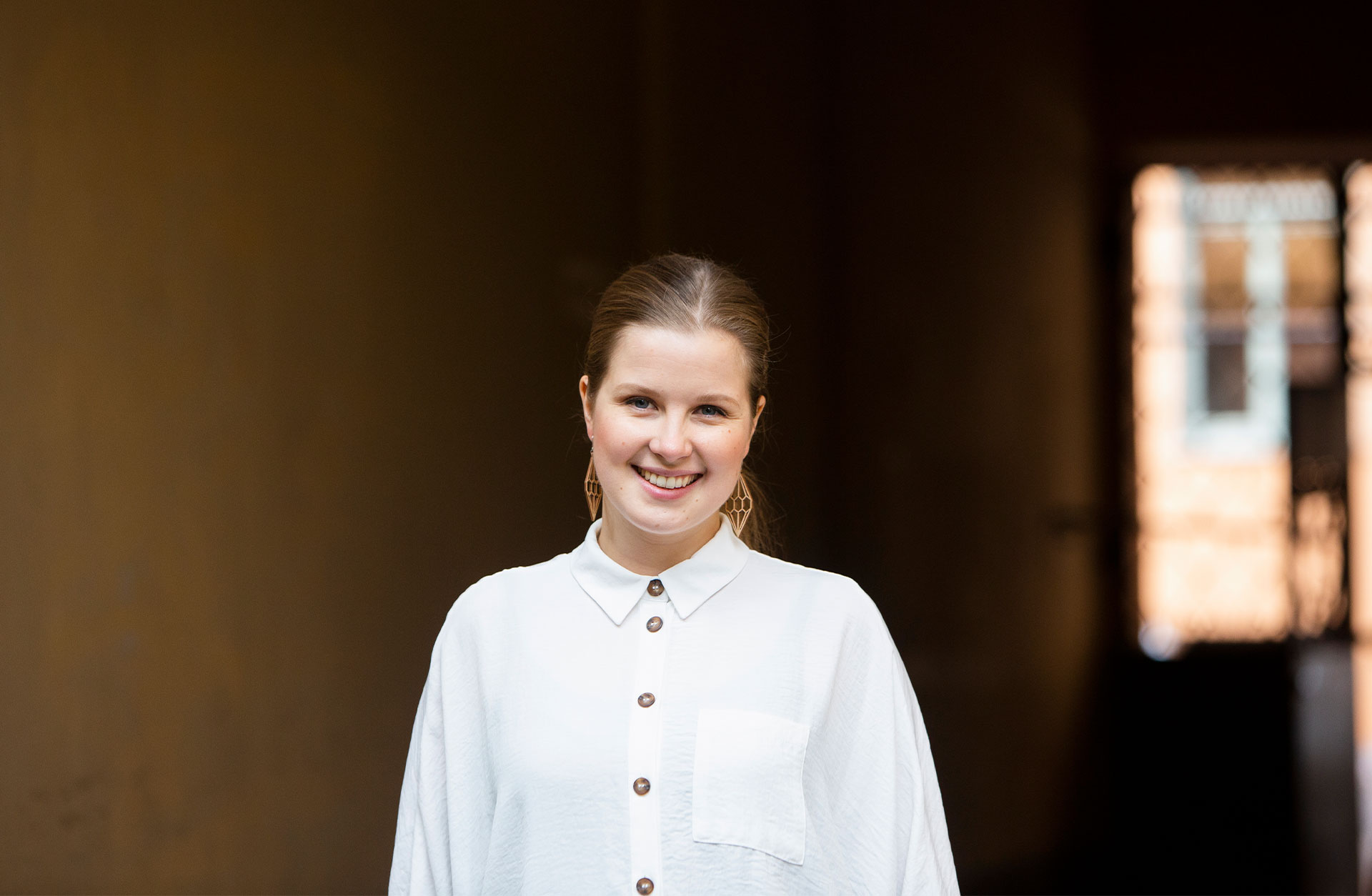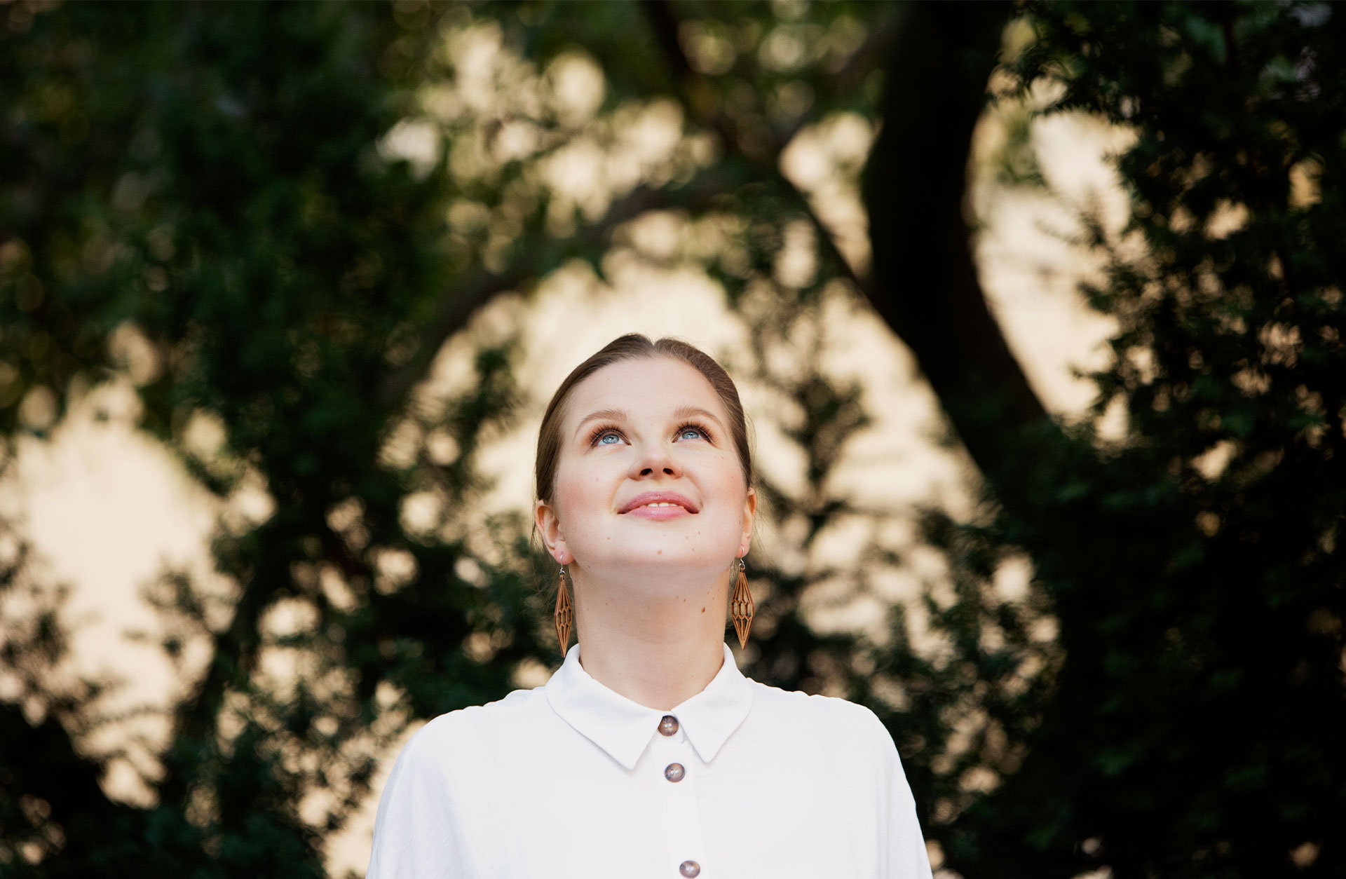 Emilia Hoving tveckar inför frågan om hur hon, som så pass ung, kan ha en så självklar auktoritet inför stora orkestrar med mängder av erfarna, äldre musiker: