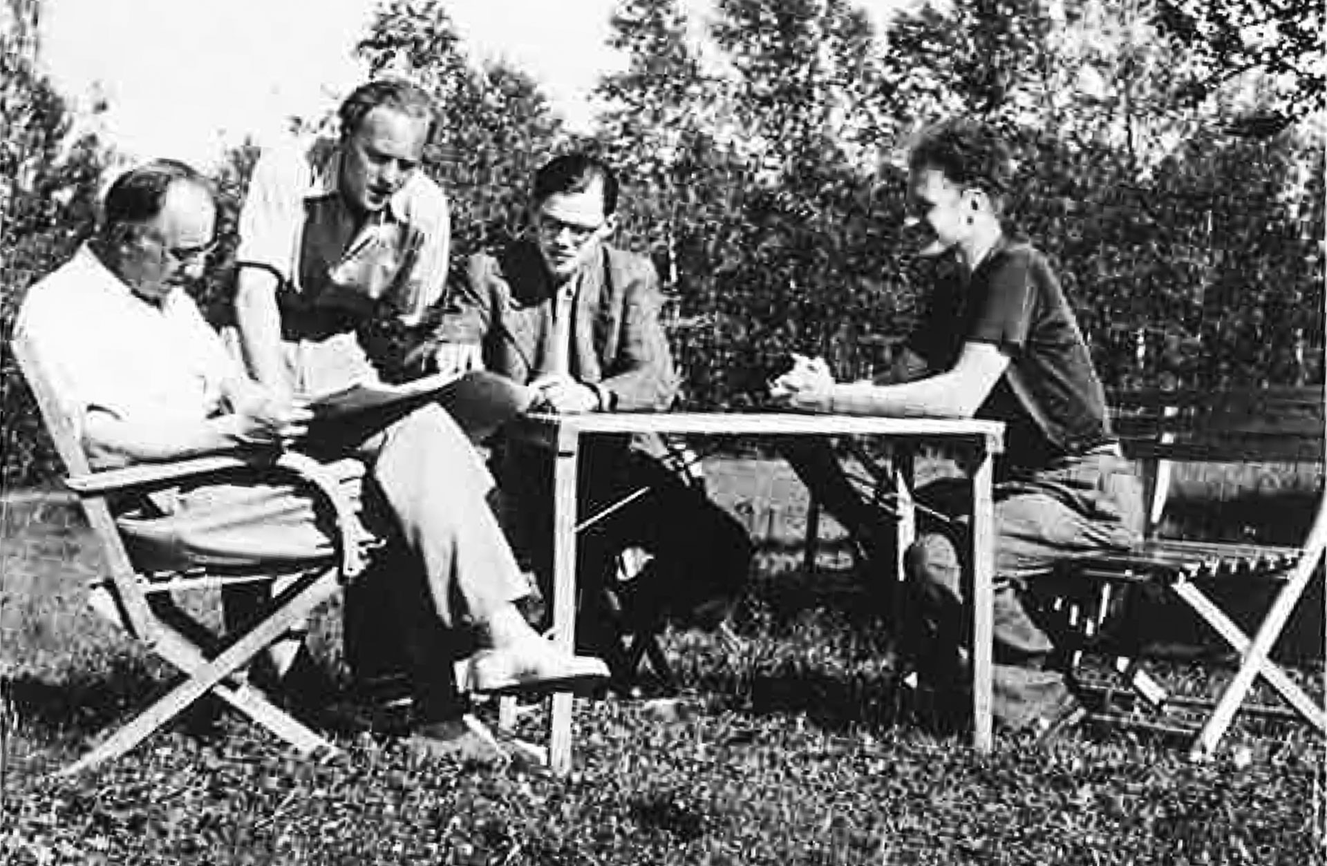Karl-Erik Welin, Lidholms lärare Matyas Seiber, Lidholm, Karl-Birger Blomdahl, György Ligeti i Köln.