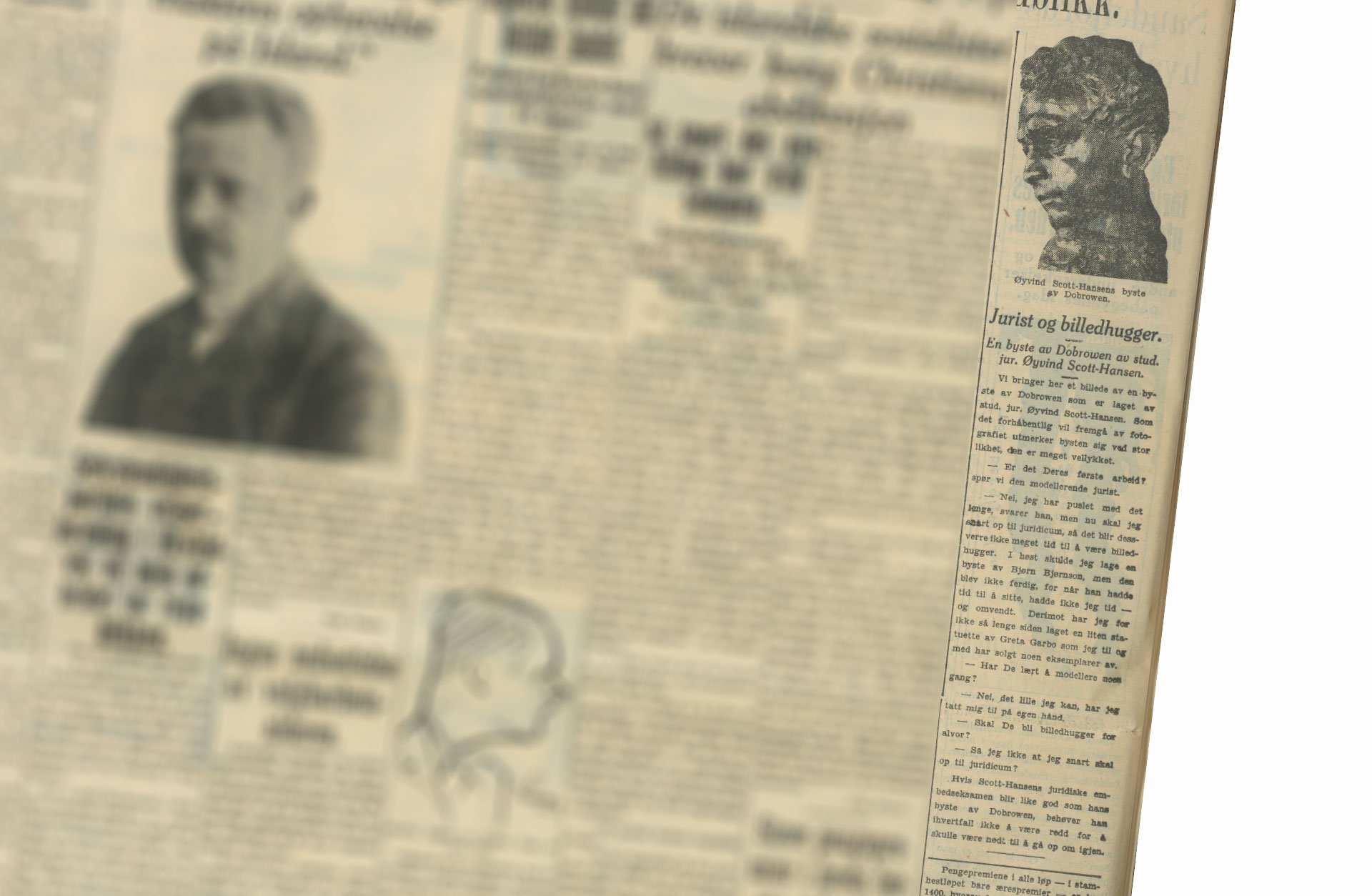”Vi visar här en bild på en byst föreställande Dobrowen, som är gjord av jur. stud. Øyvind Scott-Hansen. Som det förhoppningsvis framgår av fotografiet utmärker sig bysten av stor likhet, den är mycket lyckad.