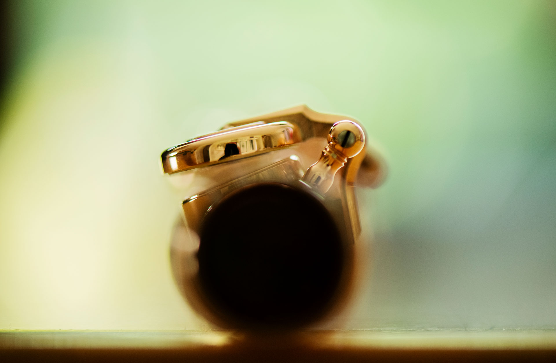 Han är glad över inköpet, det märks. Den är verkligen gyllene och matchar vigselringen på vänsterhanden perfekt. Men Haynesflöjten behöver han inte putsa på samma sätt, guldet är mera tåligt.