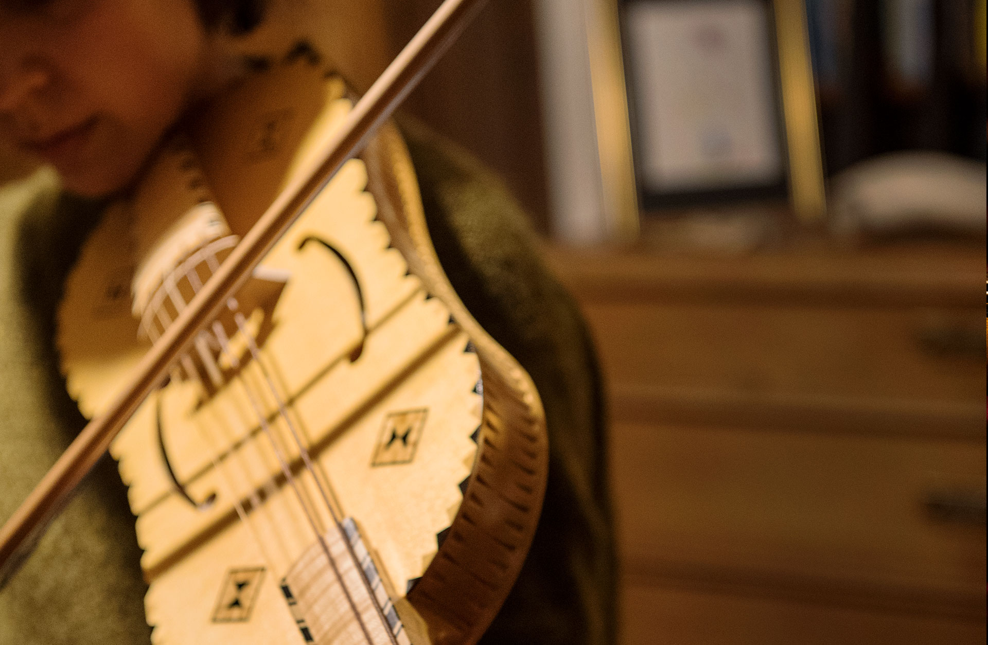 – Morse-Brown bygger instrument till tidig musikensembler i hela Europa. Mitt instrument har tre d-strängar och två g-strängar istället för violans a, d, g och c. Jag har alltid velat spela nyckelharpa och det här är det närmaste jag har kommit.