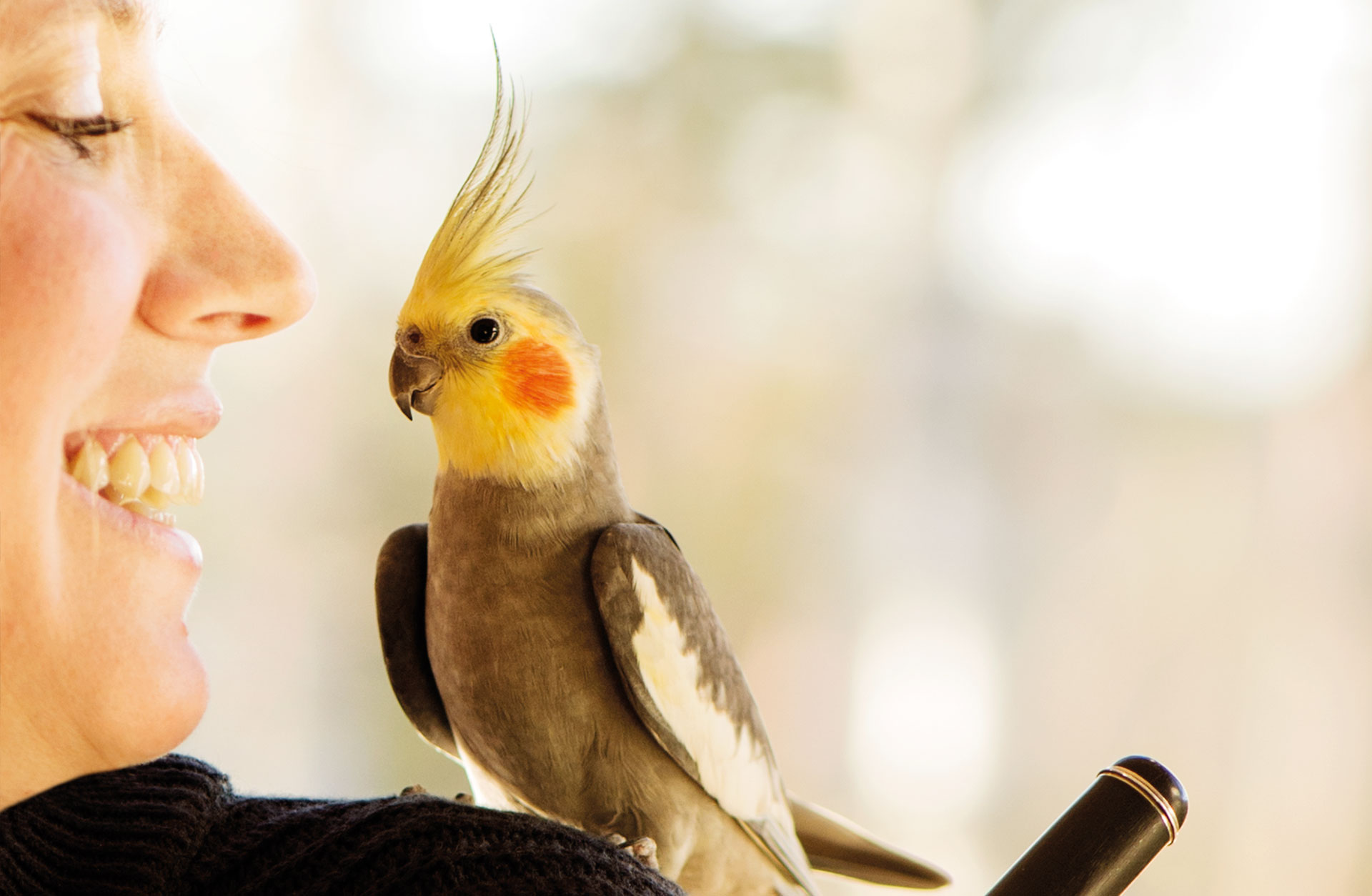 Det är inte bara Tina Ljungqvist som flöjtar därhemma. Det gör också nymfparakiten Snuttis, döpt av de tre sönerna Ruben, Ebbe och Axel.