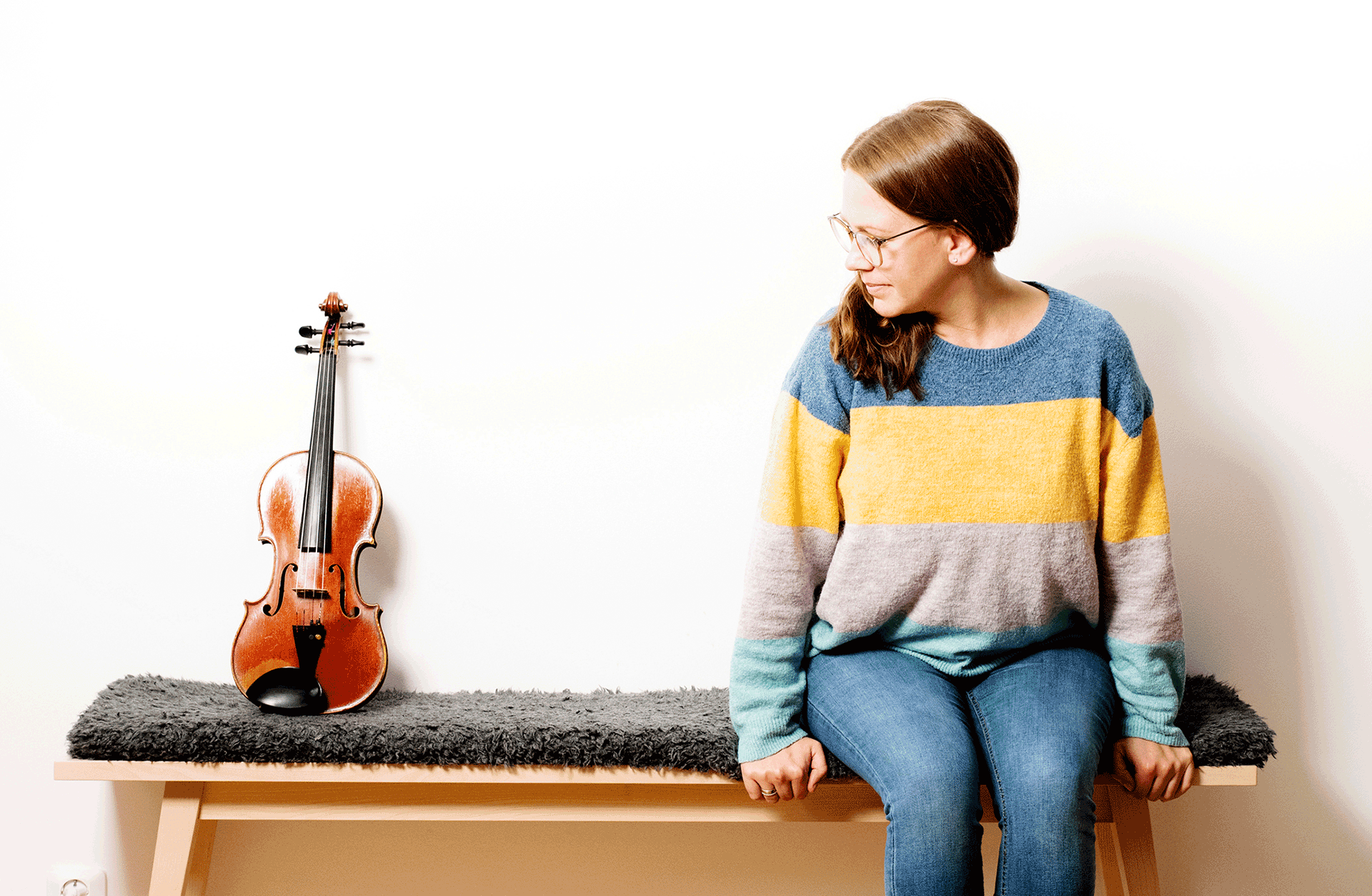 – Mamma har berättat att jag sparkade jättemycket i magen när de var på konsert. När jag gick på montessoriförskola spelade jag fiol för Göran Premberg som är med i Majornas tredje rote. En dag frågade han om jag ville spela för de andra barnen. Ja, sa jag, om du håller för ett skynke. Och så blev det, bakom skynket spelade jag Spanien och Till Paris. Efter studenten vid naturlinjen sökte hon och kom in på musikhögskolan i Göteborg. Per Enoksson, nu kollega i orkestern, var hennes lärare under två år.