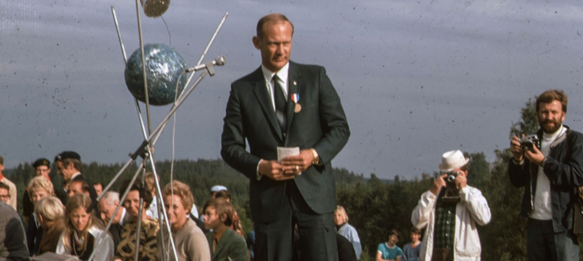 – Jag minns det väldigt tydligt, Buzz Aldrin stod där i talarstolen på fältet och höll ett tal. Det var mycket folk och väldigt spännande.