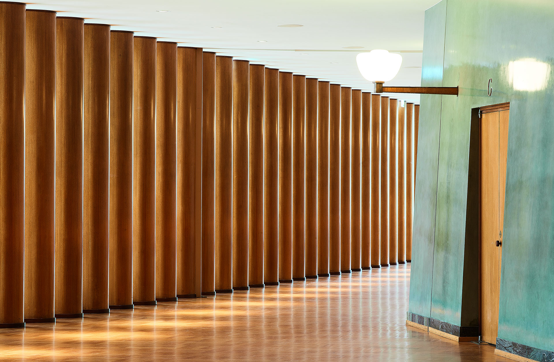 På något sätt symboliserar de sparsamheten i arkitekten Nils Gunnar Erikssons visioner för Göteborgs Konserthus: ren skönhet utan onödigt överflöd. Illusionen av en pelargång som likformigt sträcker sig i mahogny och glas längs långväggen, där relieferna dyker upp som små skatter här och där.