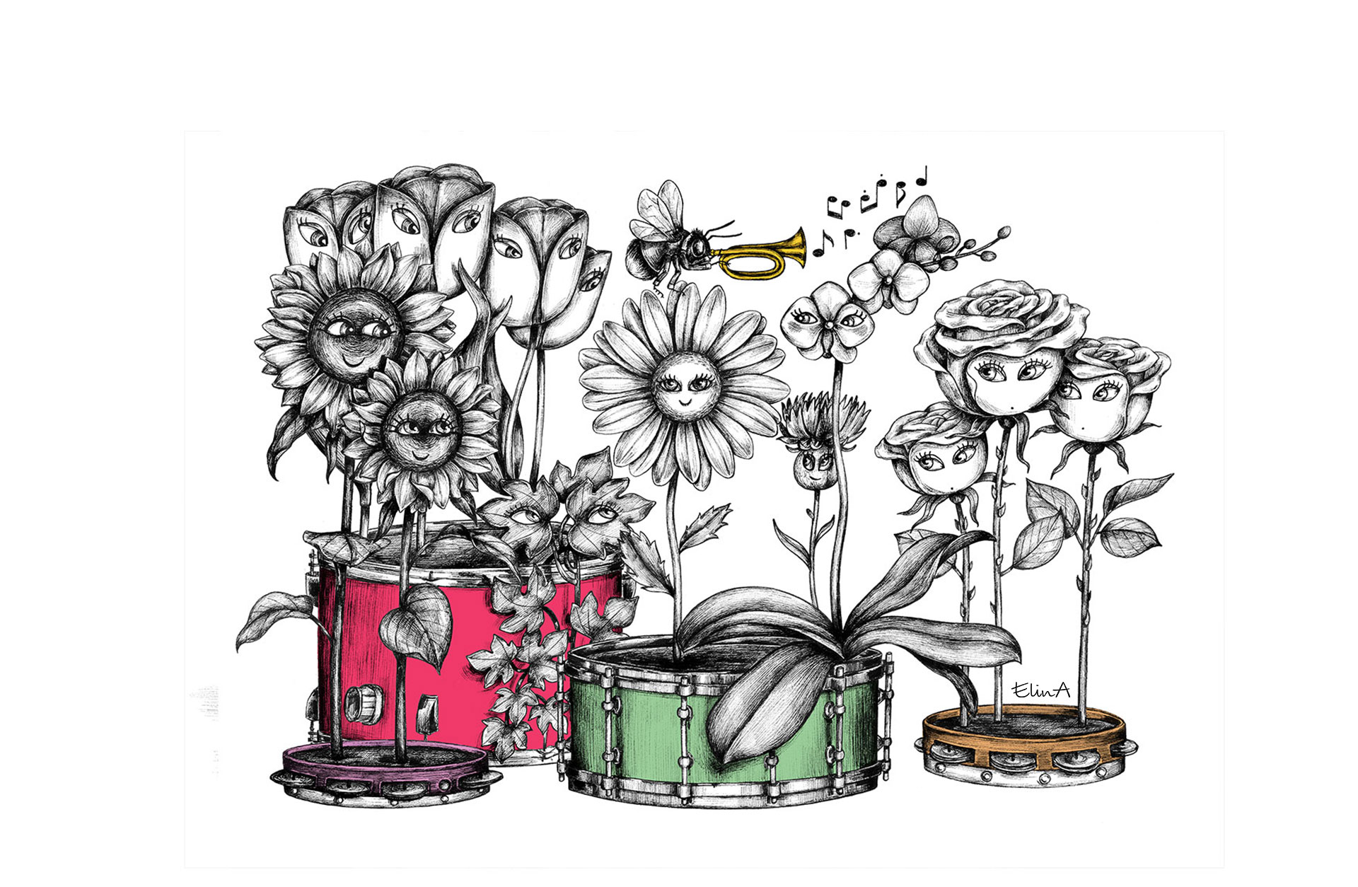 – Alla blommorna har sitt eget sätt att bli bekväma i livet, det försöker jag illustrera i musiken. Jag har komponerat ett musikaliskt motiv till varje karaktär. När jag skriver tänker jag inte så mycket på att det är för barn. Jag skriver det jag tycker är fint.