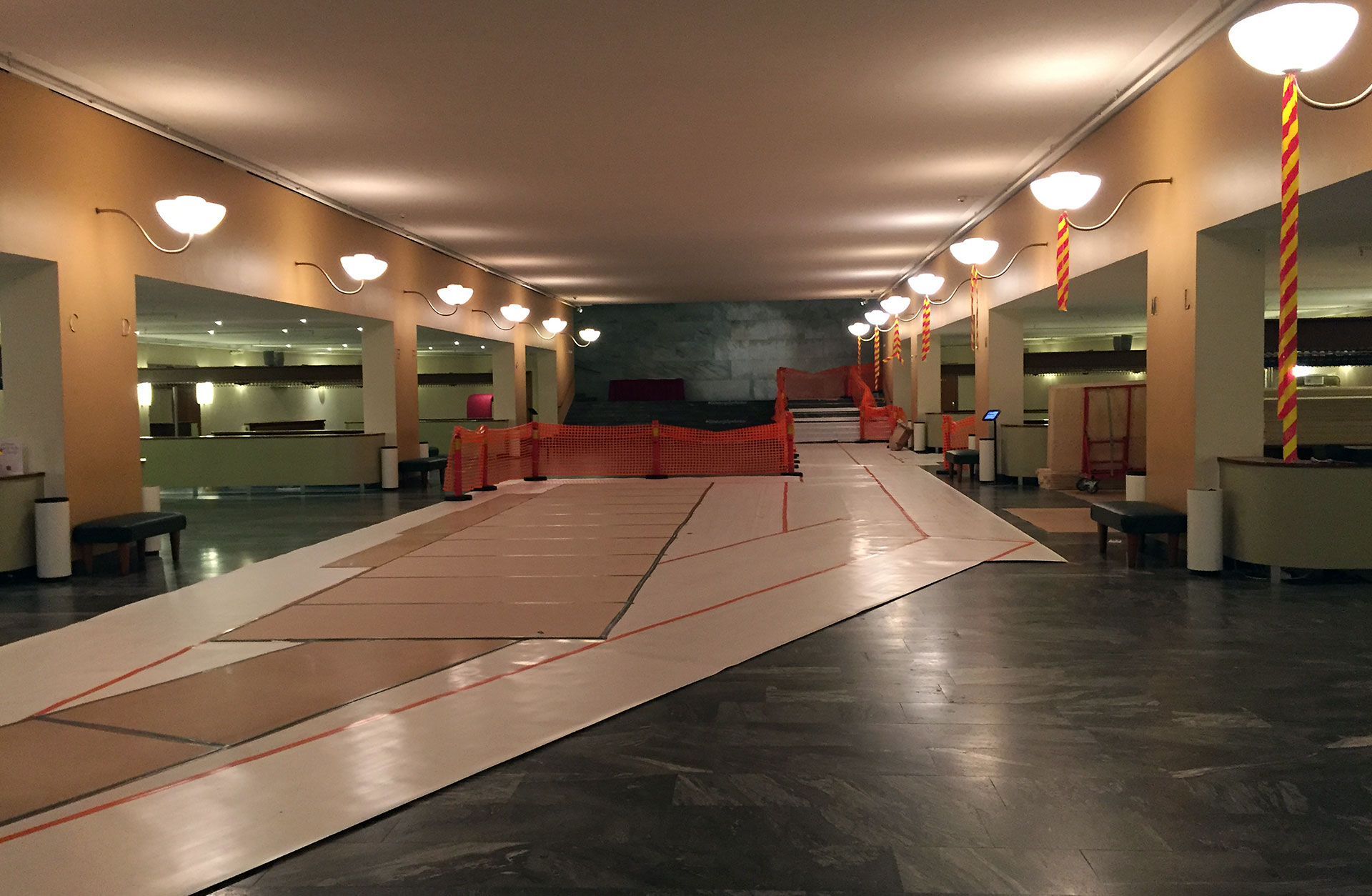 Alla ventilationsöppningar byggdes också om, de som man kanske inte tänker på men som finns under stolarna och ser till att det blir lämplig luftcirkulation i salarna. Sedan skulle alla linoleummattor läggas – sammanlagt ett antal hundra kvadratmeter! Först efter detta grundläggande och omfattande arbete var det dags för de nya stolarna att göra entré. De monterades en för en med golvfästen i stål. Alla skulle sättas på plats och skruvas fast. Bara att få dem från lastbilstransporterna ute på Stenhammargatan till sin rätta plats i salarna krävde att speciella transportvägar med staket och golvskydd drogs genom foajén till Stenhammarsalen och genom Garderobshallen och trappan upp till Götaplatsfoajén med destination dörr G. Rödgulrandiga plastremsor hängde också från de ömtåliga lamporna i Garderobshallen som en tydlig varningssignal.