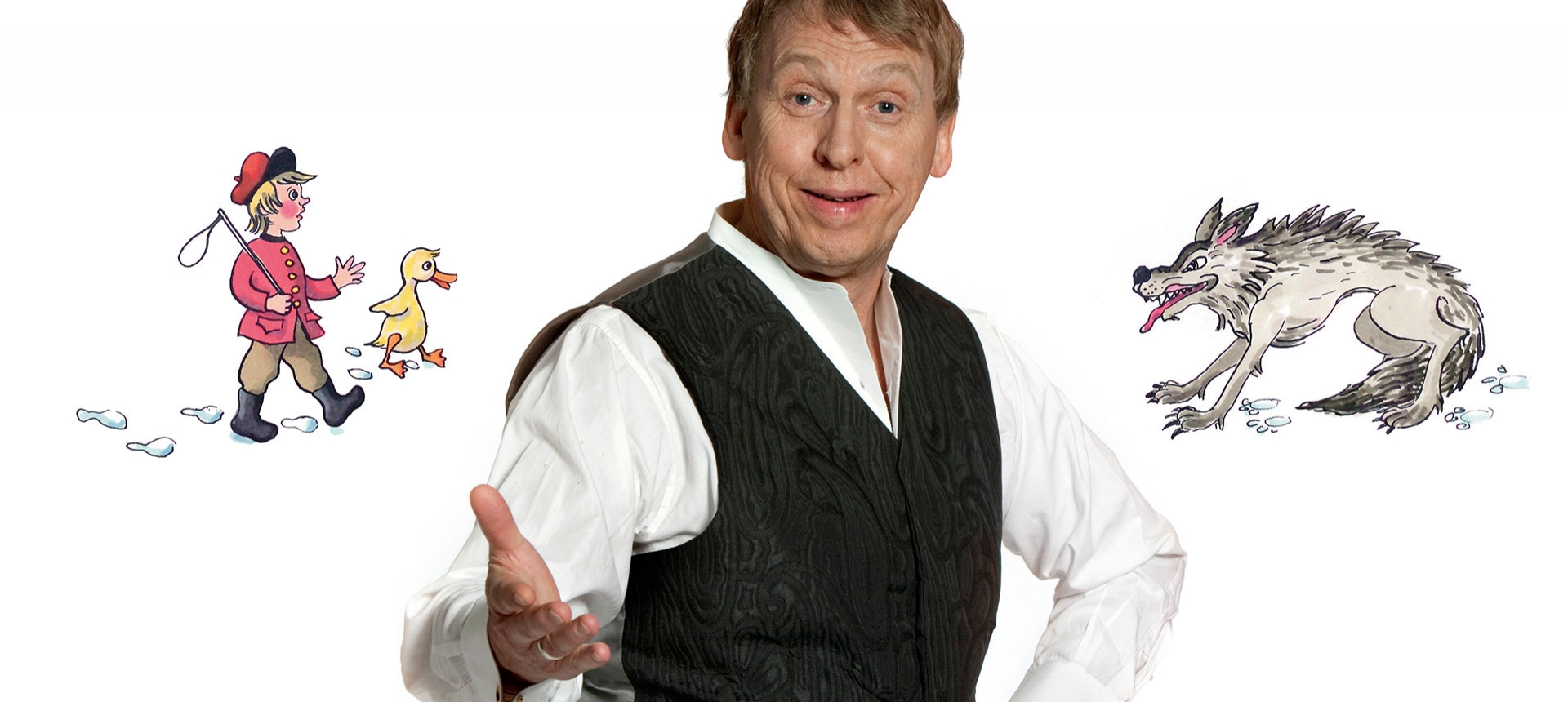 Konserthuset. Han har varit Påklädaren Norman i pjäsen som heter just Påklädaren och blir nu Berättaren, först i Prokofjevs Peter och vargen och något senare i Stravinskys Historien om en soldat.